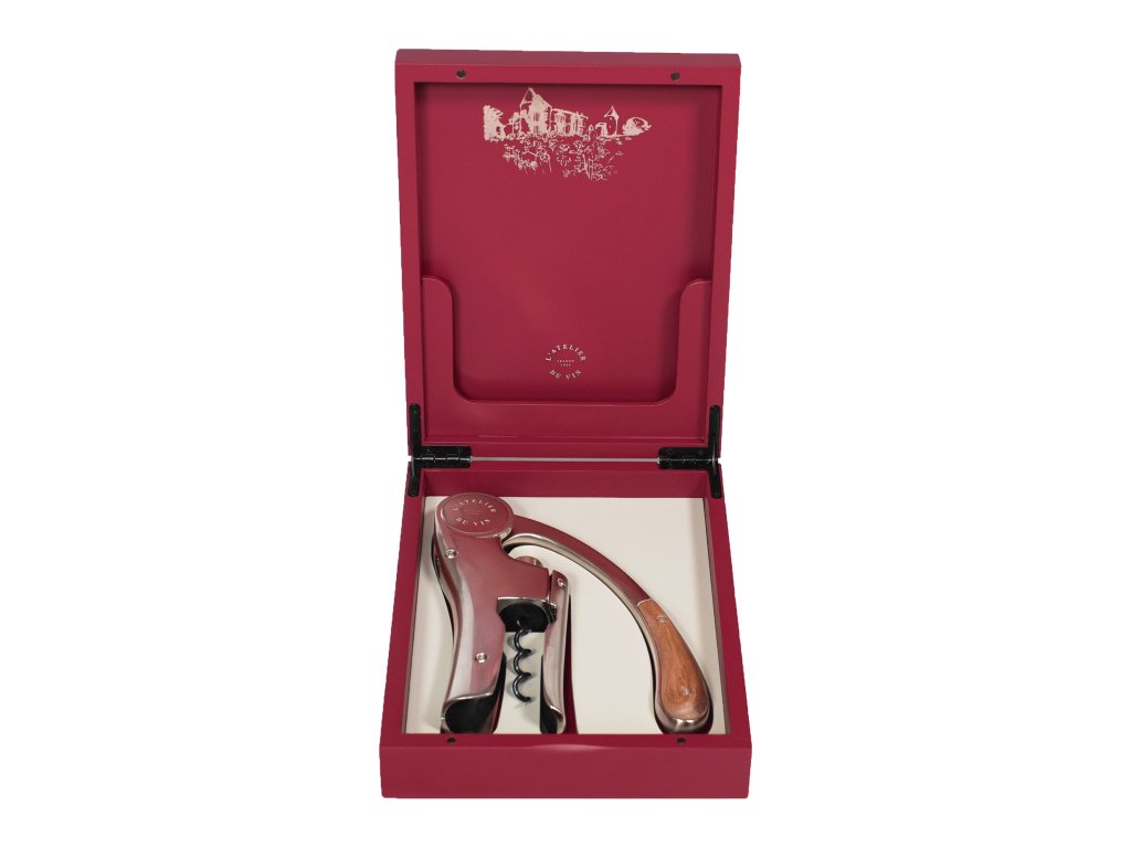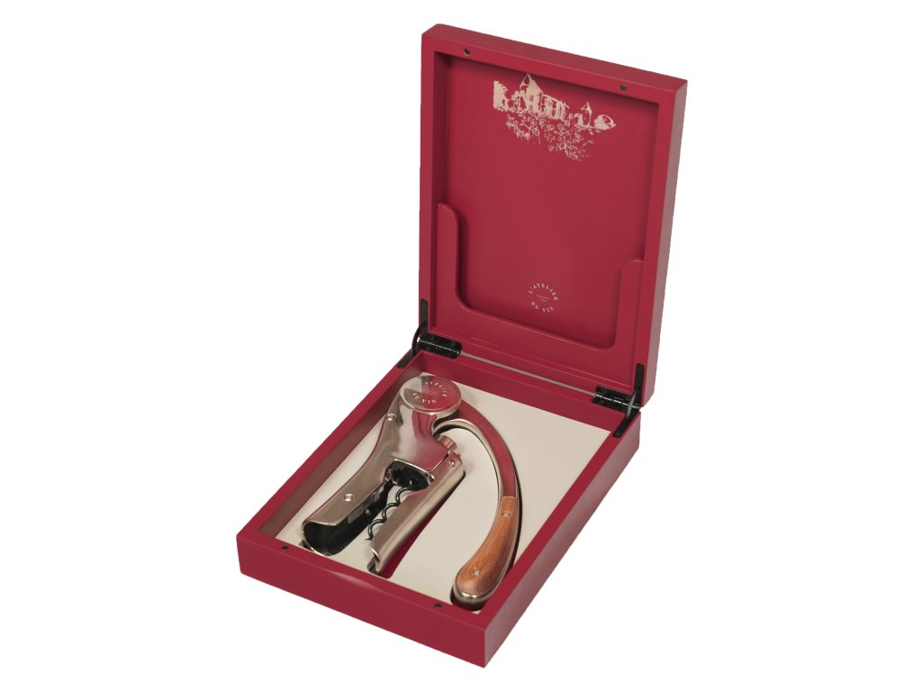 OENO MOTION Trésor je jedinečný dárek. Na první pohled se prezentuje v podobě tajemné dřevěné krabičky, lakované v decentní červené barvě. Jeho jemné laserové rytiny ve vysokém rozlišení evokují moderní estetiku starožitné truhly. Znaleckému oku odhaluje razítko L’Atelier du Vin značku vzácného enologického pouzdra.
