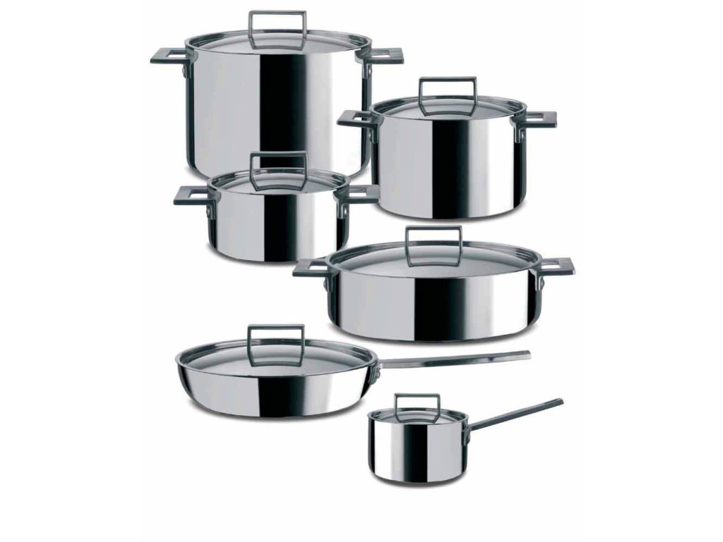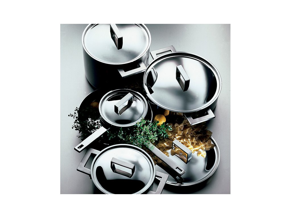 Attiva nerezových hrnců s poklicemi. Mepra. Itálie.