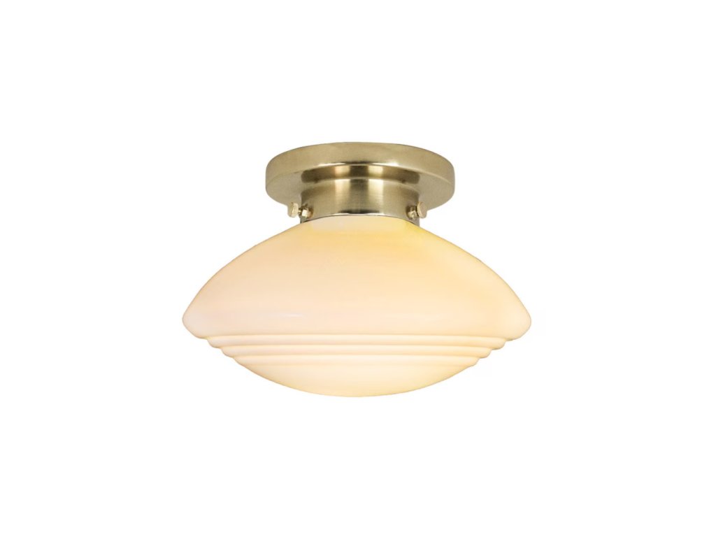 Elegantní stropní svítidlo s čistými liniemi, které spojuje nostalgický charakter s moderní funkčností. Matně opálové sklo vytváří měkké, příjemně rozptýlené světlo, zatímco kovové detaily v mosazném provedení dodávají svítidlu luxusní a teplý nádech. Ideální volba pro koupelny, ale i chodby, šatny či jiné menší prostory.