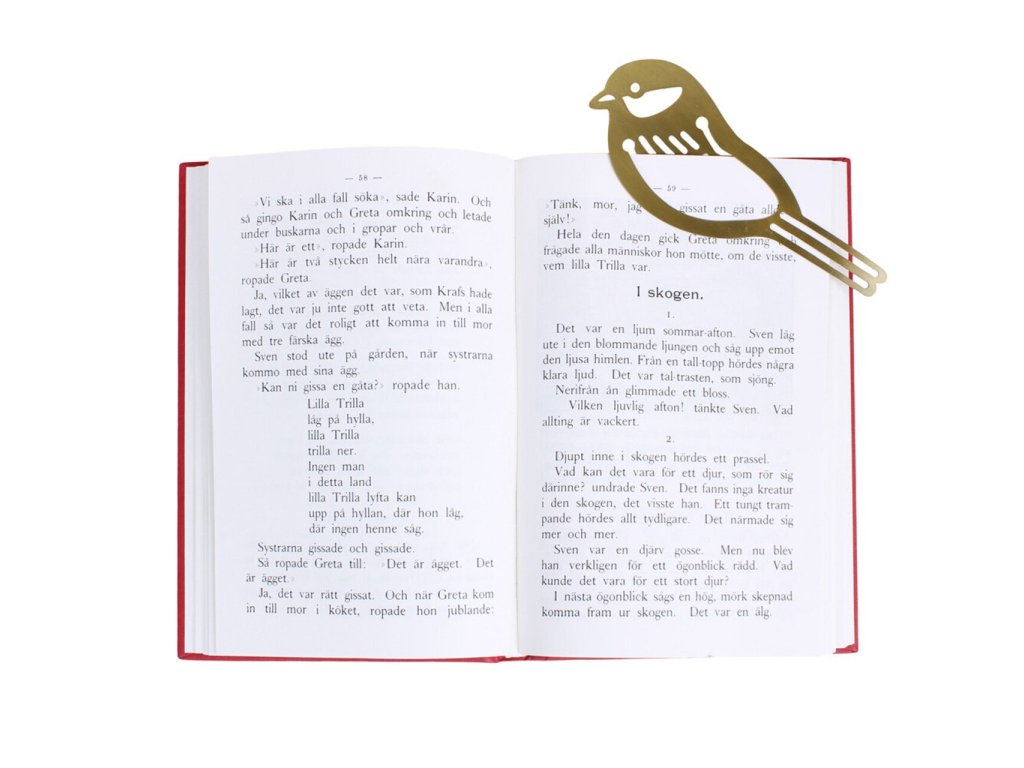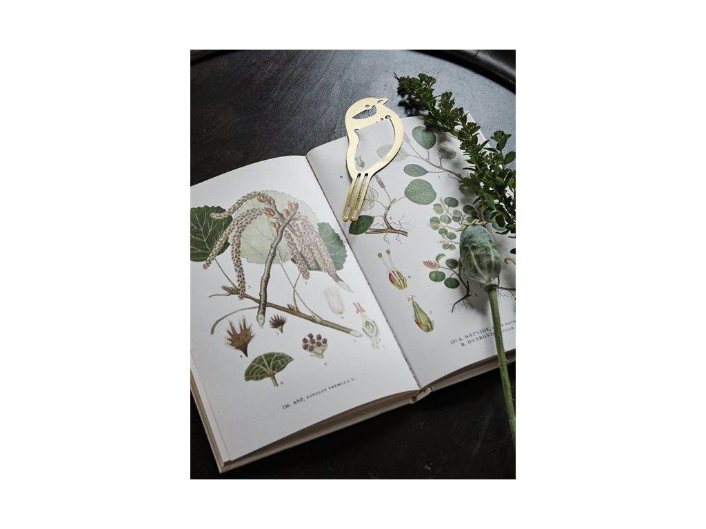 Dekorativní záložka ve tvaru ptáčka vyrobená z kovu s mosaznou povrchovou úpravou. Stylový doplněk pro milovníky knih, který umožňuje elegantní označení posledně přečtené stránky.