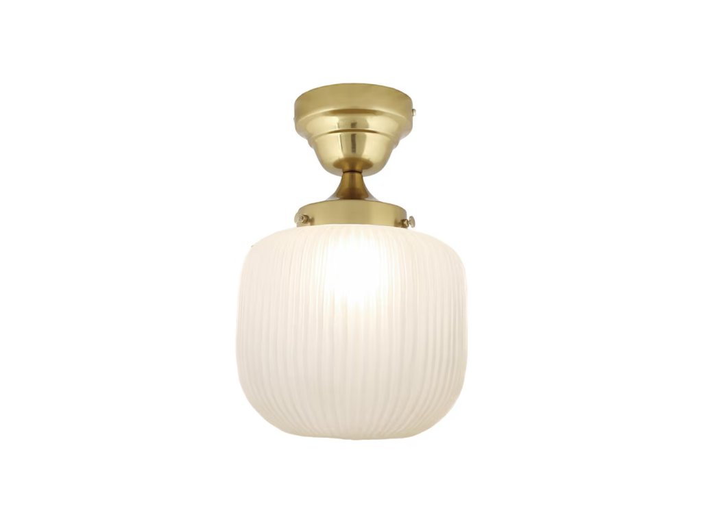Tato malá stropní lampa Eli Brass/Frost Small je perfektní volbou pro zákazníky, kteří hledají stylové, ale úsporné osvětlení — ideální pro koupelny, chodby či nízké stropy.