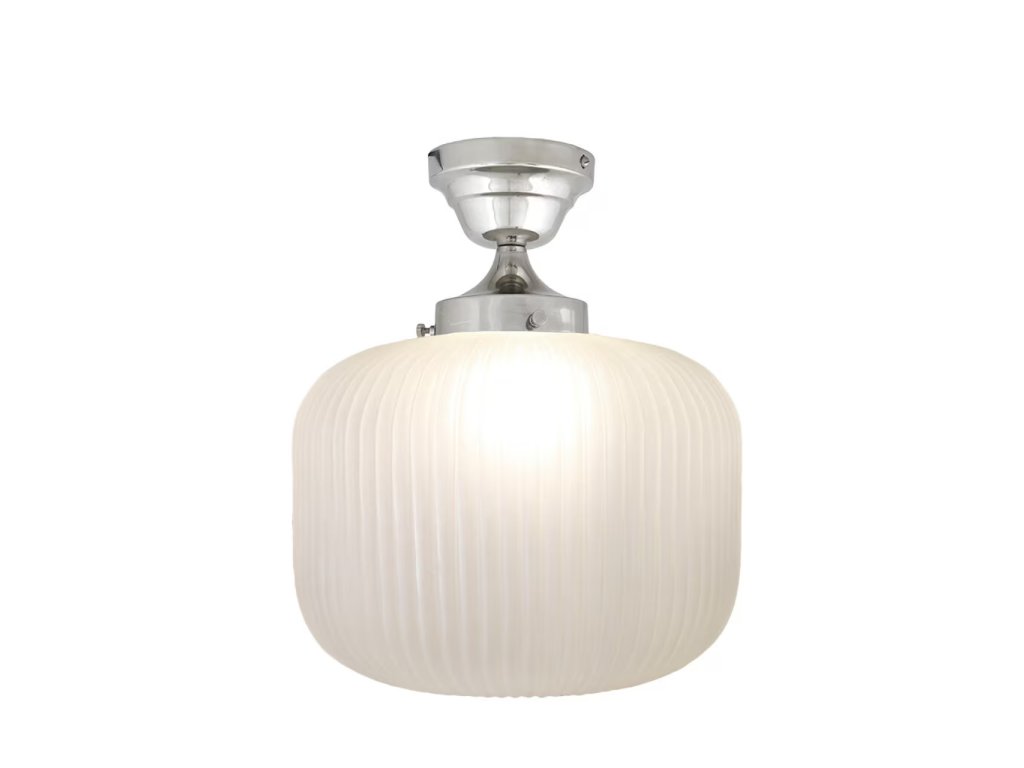 Elegantní stropní svítidlo v decentním provedení s jemným světlem a výrazným, ale přitom kompaktním tvarem – ideální do větších koupelen, předsíní i stísněných hal.
