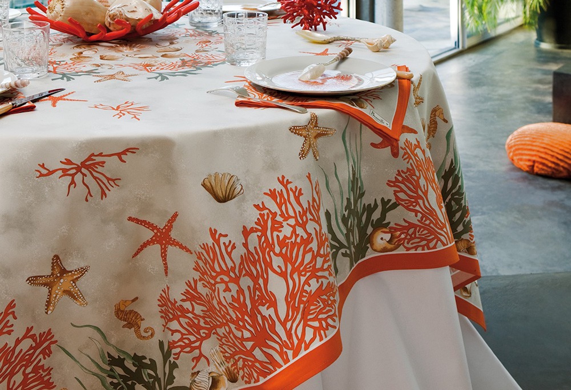Obzvláště oceňujeme ubrus Corail pro bohatost a jemnost jeho vzorů inspirovaných mořským pobřežím.