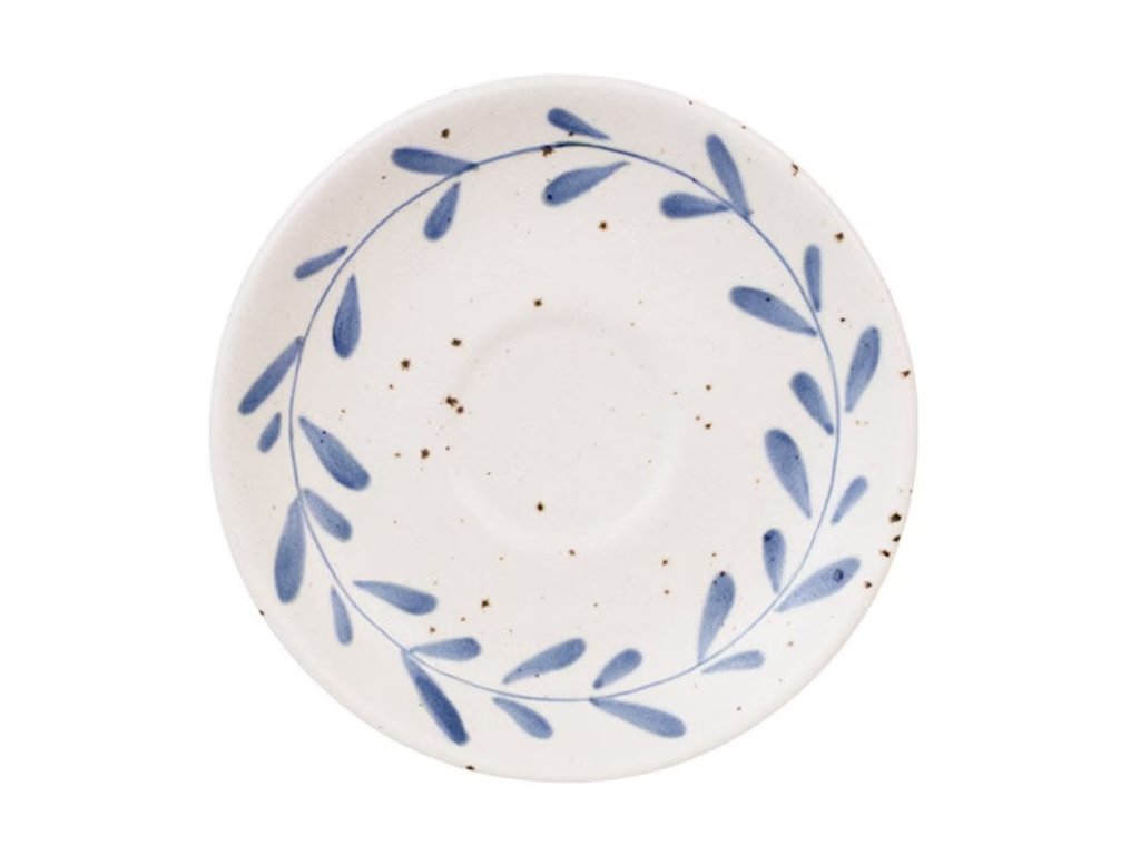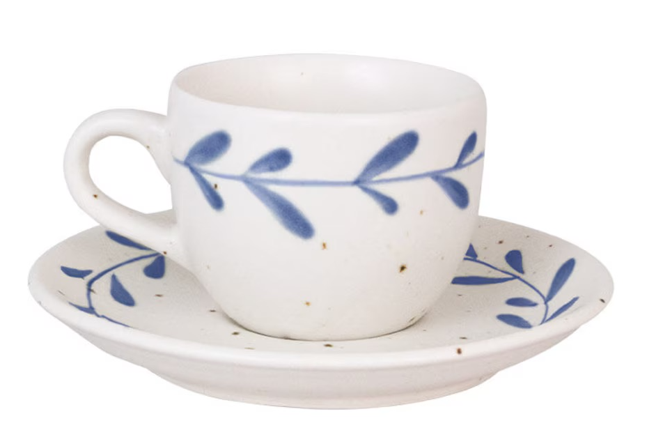 Oživte každé kávový jemnou elegancí s ručně malovaným vzorem větviček a puntíků na kamenině z kolekce Viola. Tento set šálku s podšálkem v modrobílé barevnosti přináší harmonii nostalgie a moderního minimalismu.