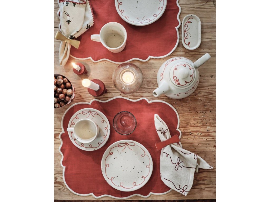 Oživte své stolování jemným, ručně malovaným doplňkem, který vnese do vaší kuchyně nádech švédské nenucené elegance. Jemné puntíky doplněné dekorativní mašličkou na okraji vytvářejí jednoduchý, ale působivý vzor.