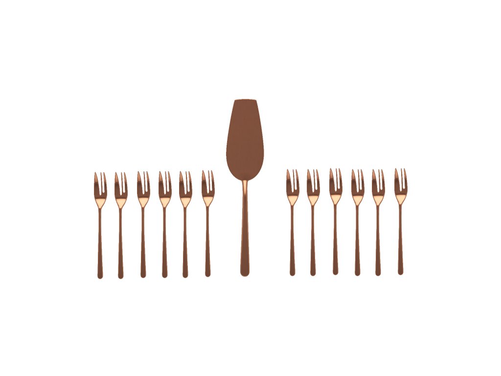 Dezertní vidlička LINEA BRONZE + lopatka, sada 13 kusů, lesklá bronzová Mepra