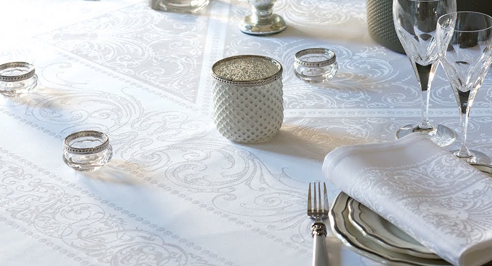 Ubrus, běhoun, prostírka - 100% čistá organická bavlněná damašek (žakár). Vyrobeno ve Francii. Ošetřen proti skvrnám Green Sweet: vaše prostírání je chráněno proti skvrnám.