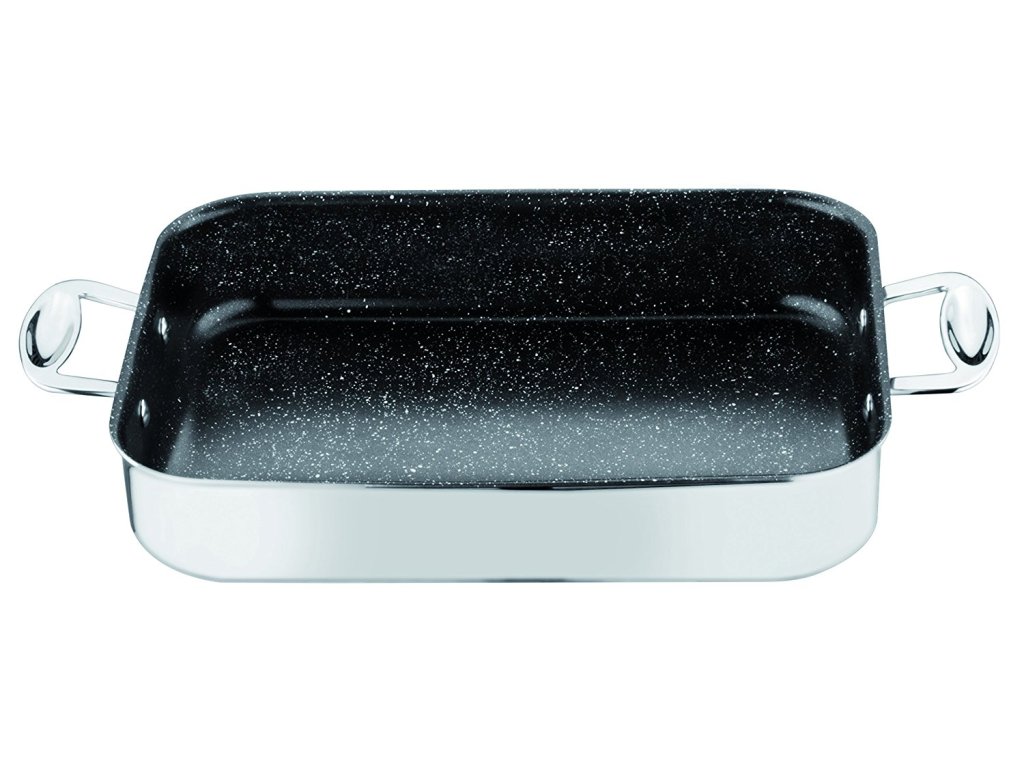 Materiály: nerezová ocel 18/10 (nejhygieničtější, nerezavějící a snadno čistitelný materiál); nepřilnavá vrstva Stone (odolná vůči kovovým nástrojům a vysokým teplotám).