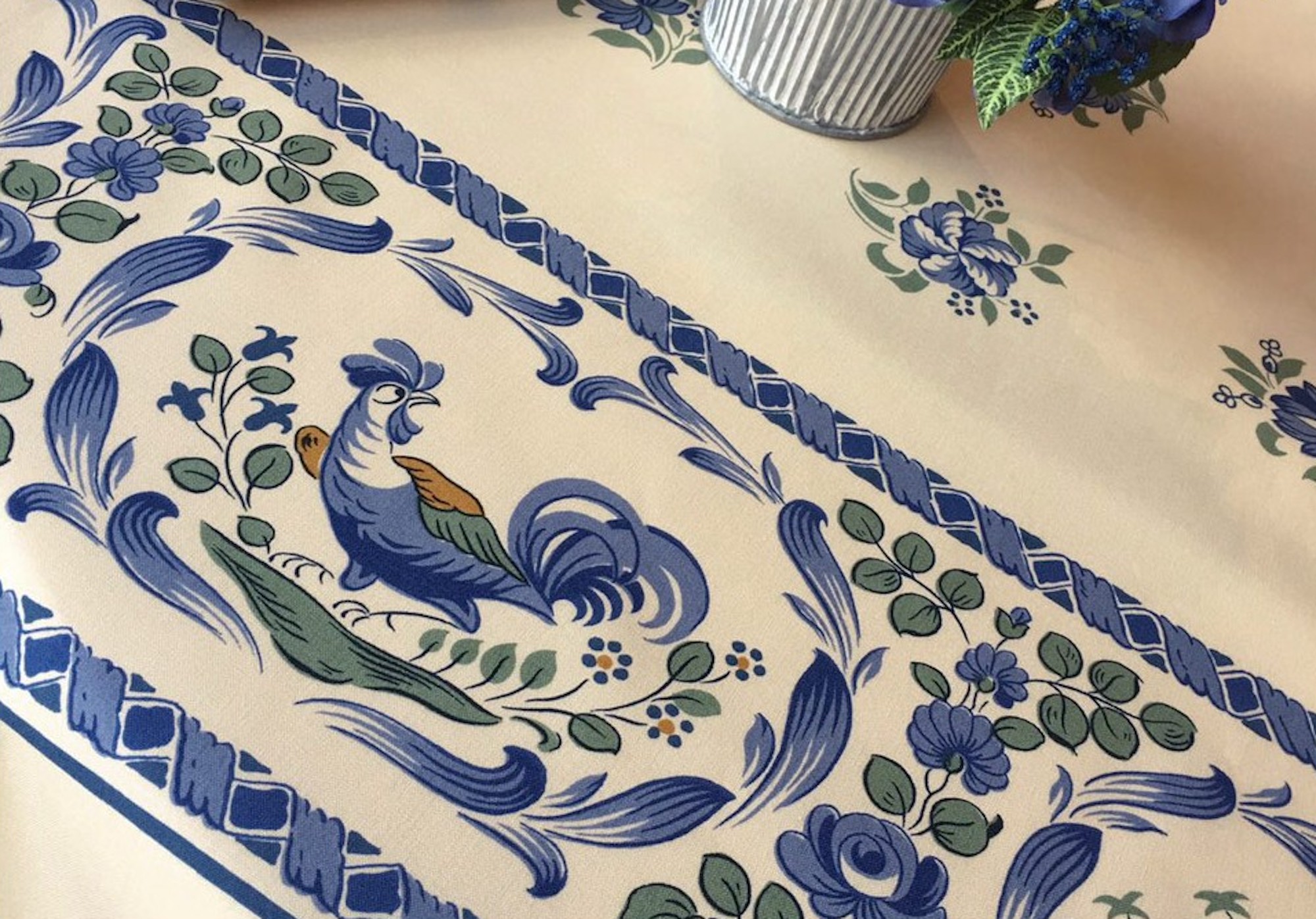 Obzvláště nás těší nádherné detaily ubrusu Les Coqs.