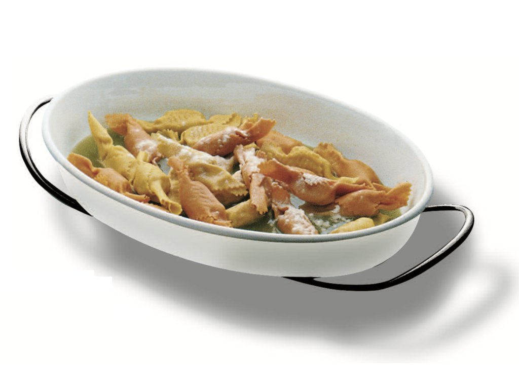 Rozměr podnosu 48x36 cm. Porcelánová zapékací mísa je součástí výrobku.