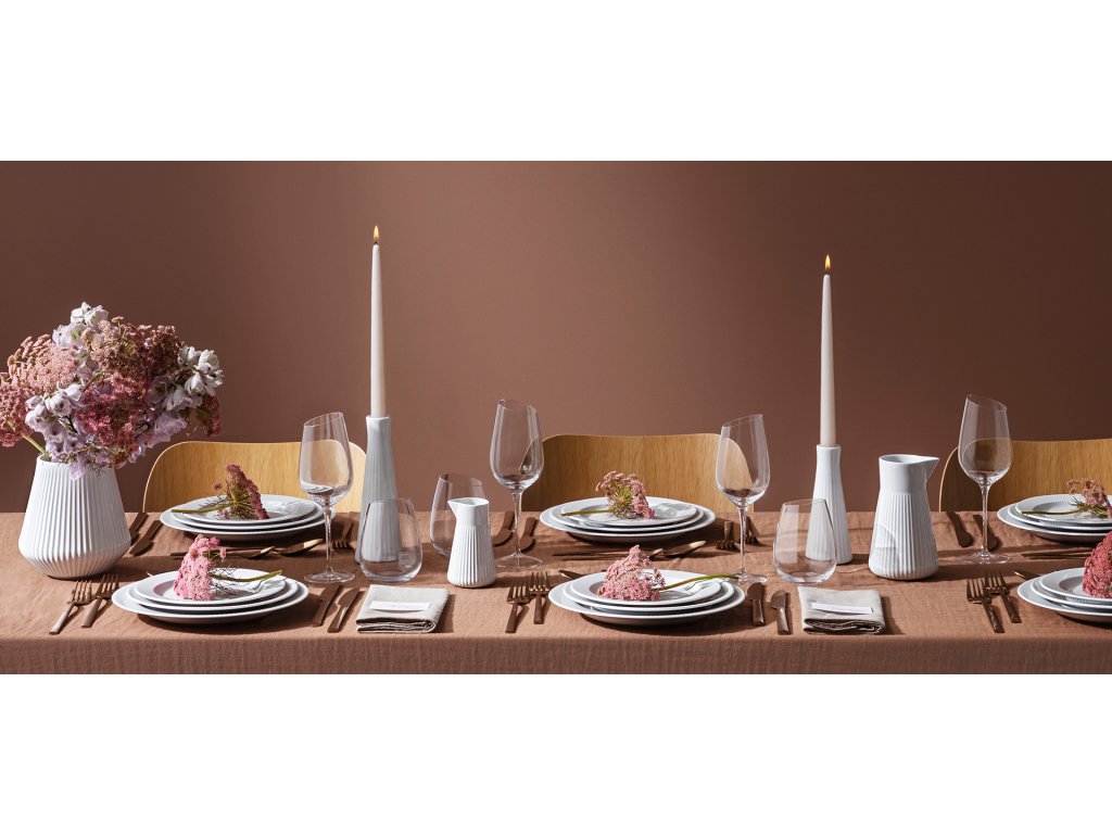 Talíře Legio Nova jsou dostatečně robustní pro každodenní použití a jsou samozřejmě zcela vhodné pro mytí v myčce. Se svými rafinovanými drážkami, které elegantně orámují jídlo, a lesklým glazovaným povrchem se večeře Legio Nova stejně hodí pro večírky a slavnostní události, kde chcete, aby váš stůl byl obzvláště reprezentativní. Série obsahuje kromě talířů také mísy, servírovací misky, džbány, vázy a mnoho dalších kousků, které dotvářejí dobře prostřený stůl – a stále přibývají nové kousky.