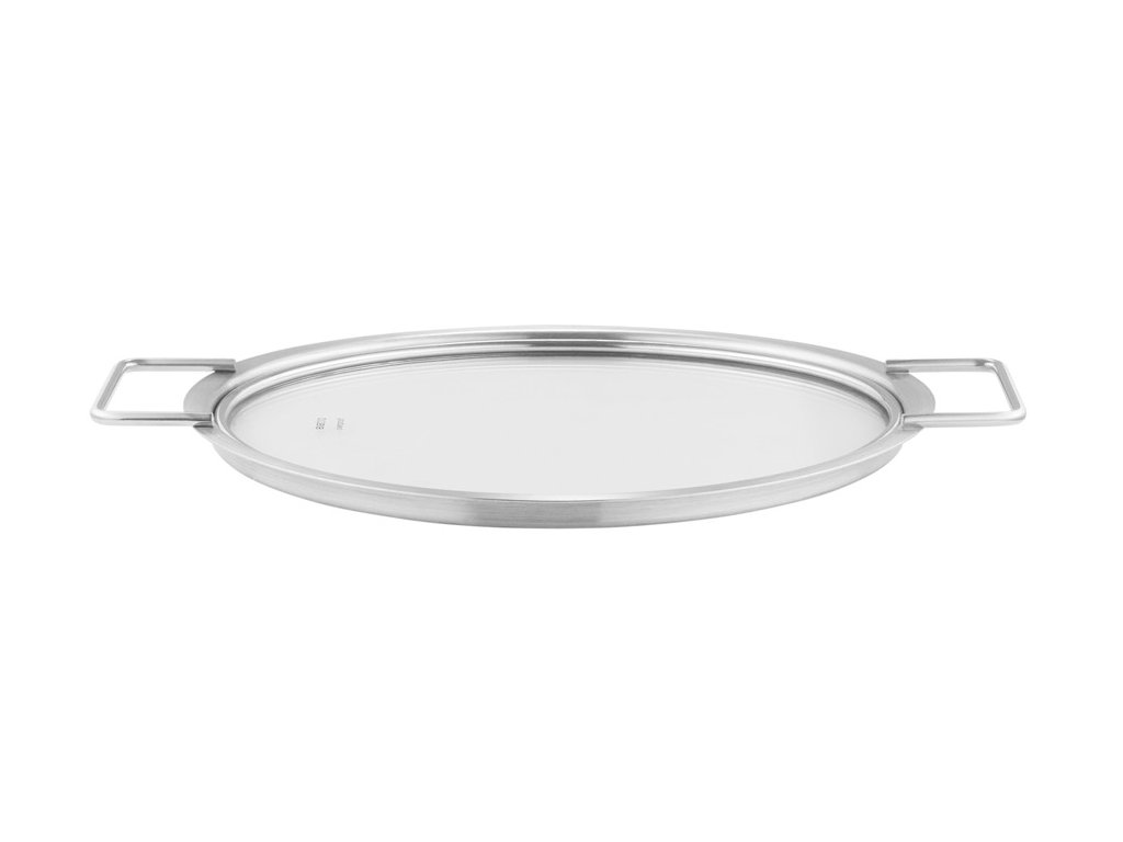 Plochá víka lze naskládat na sebe nebo zavěsit na háčky. Poklice mají dlouhou rukojeť umístěnou na boku, což vám umožní kontrolovat jídlo, aniž byste se spálili.