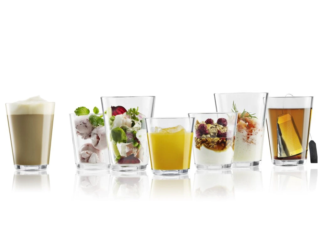 Skleničky od Evy Solo mají mnoho využití. Jelikož jsou vyrobeny z tepelně odolného, tvrzeného skla, lze je použít na teplé i studené nápoje.