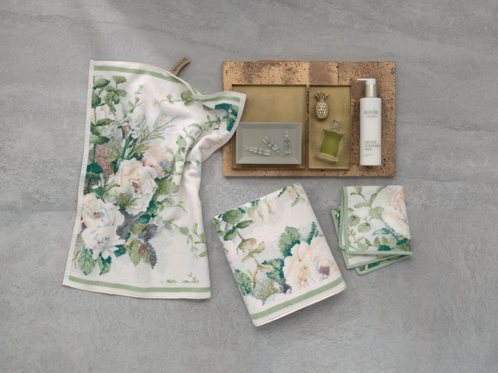 Designy speciálně navržené pro tuto techniku tkaní, většinou květinové, zajišťují typický, exkluzivní charakter produktů FEILER.