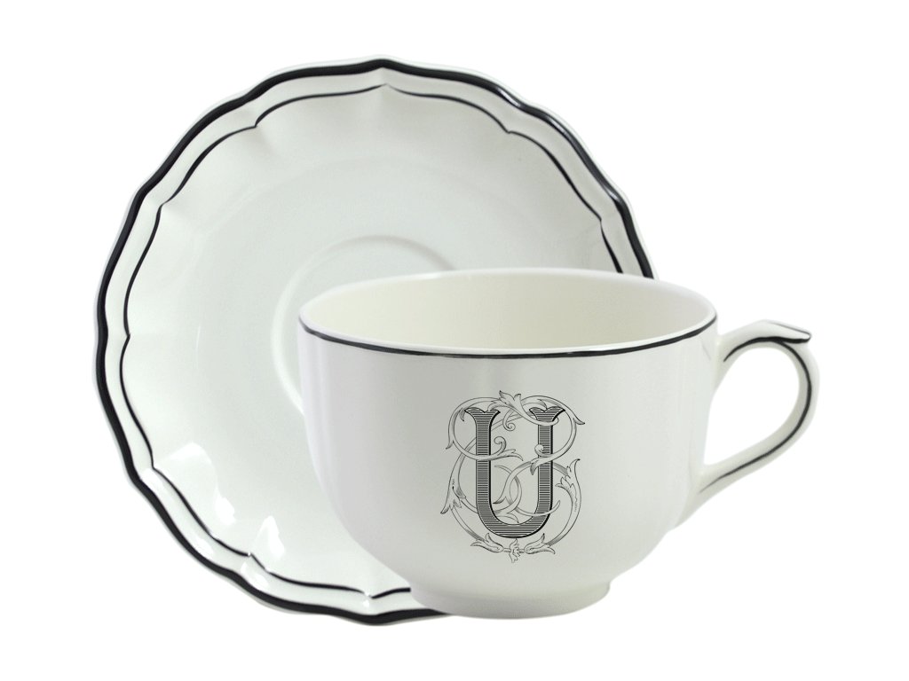 Šálek s podšálkem Jumbo U FILET MANGANESE MONOGRAMME Gien