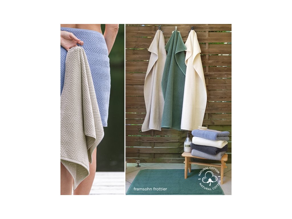 S elegantním cikcakem - struktura je vytvořena speciální technikou vysoko-nízkého tkaní. Nově vyvinutá, otevřená kroucená objemná příze vyrobená ze 100% organické bavlny dodává sérii jedinečný pocit a obzvláště objemný pocit.