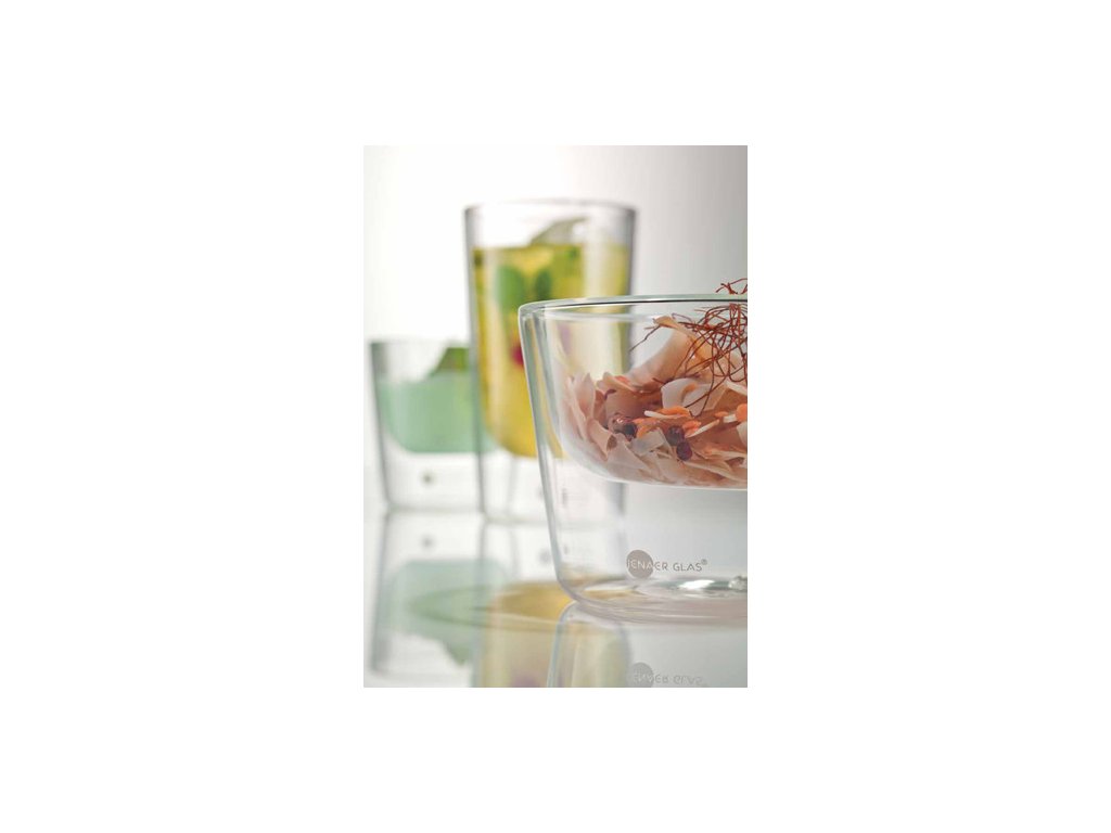 Misky JENAER GLAS FOOD & DRINKS Hot’n’Cool z dvouplášťového termoskla vynikají svým novým designem. Dvouplášťové termosklo udržuje horké pokrmy déle horké a studené pokrmy déle čerstvé, přičemž obsah vypadá, jako by se vznášel.