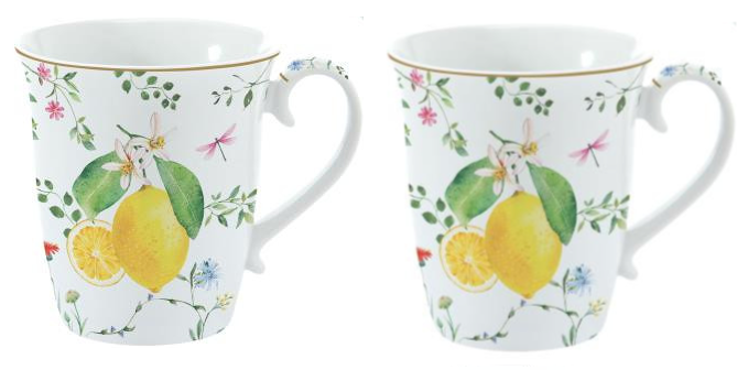 Sada obsahuje 2 hrnky z kvalitního porcelánu zdobené jemným dekorem Fleurs et Citrons. Květinové a citrusové motivy dodávají hrnkům svěží a elegantní vzhled, vhodný pro každodenní použití i slavnostní příležitosti.