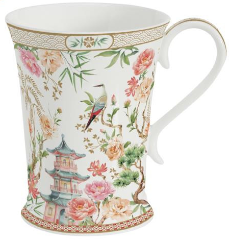 Každý hrnek je vyroben z kvalitního porcelánu, který je příjemný na dotek, odolný a vhodný do běžného provozu. Barevný motiv s orientální inspirací z něj činí nejen praktický kousek, ale i dekorativní prvek.