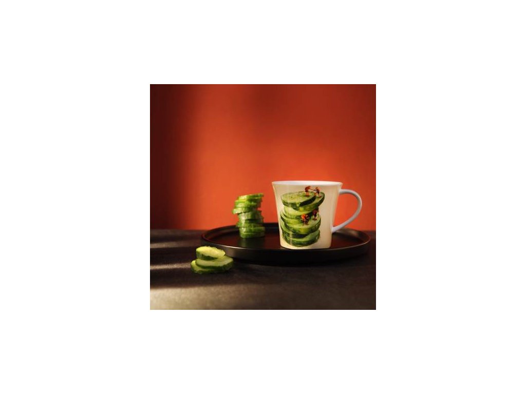 Hrnek z kolekce Daria Rosso s názvem Reaching Lighter Summits je elegantním spojením uměleckého výrazu a praktičnosti. Každý kousek je jako malý obraz – s jemným, osobitým designem, který přináší do vašich chvilek s kávou či čajem trochu snění a klidu. Neobvyklý motiv okurky dodává hravý akcent.