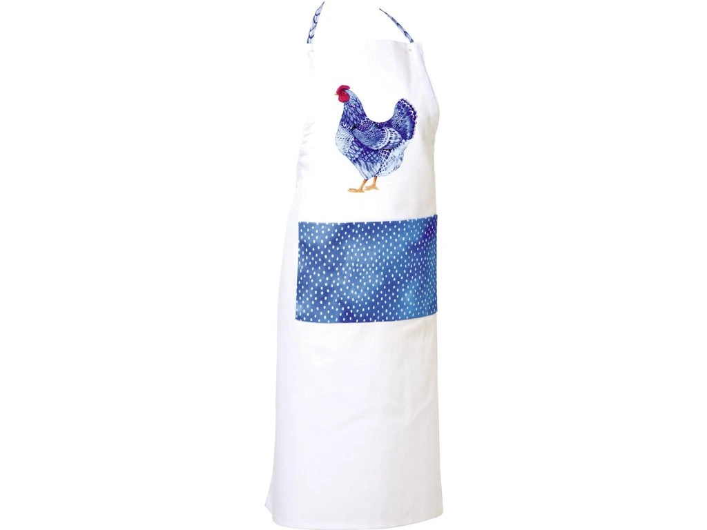 Zástěra zaujme svým originálním designem, který kombinuje jemné barvy s výrazným motivem modrého kohouta. Tento motiv je nejen esteticky příjemný, ale také přináší do vašeho interiéru nádech přírody a venkovského života.