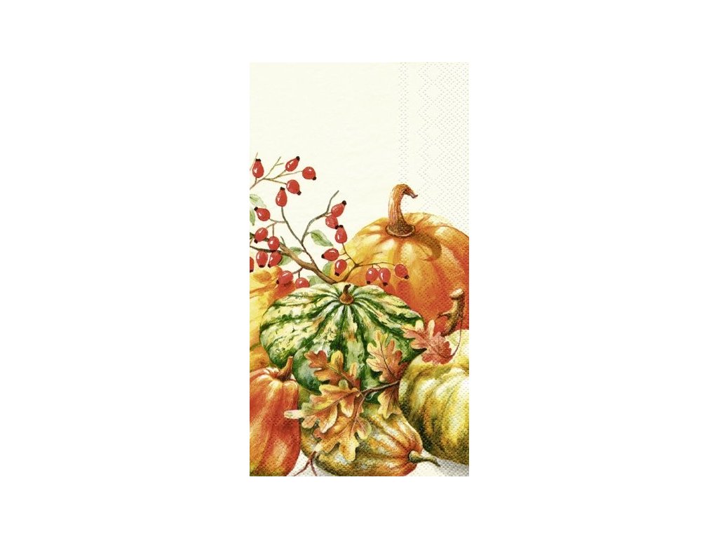 Vneste do svého stolování podzimní atmosféru s těmito stylovými papírovými ubrousky od renomované značky IHR. Design „Calabaza“ s motivem dýní a podzimního listí dodá vašemu stolu teplý a útulný vzhled, ideální pro sezónní oslavy a rodinná setkání.