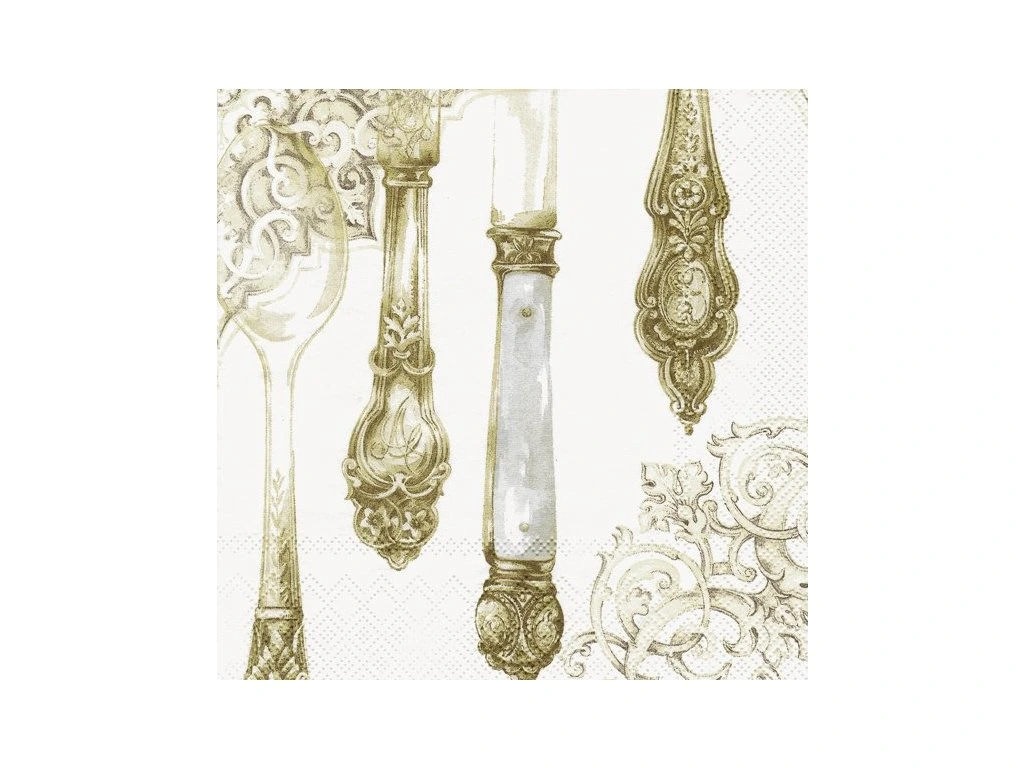 Velké ubrousky 33x33 cm CUTLERY white gold IHR