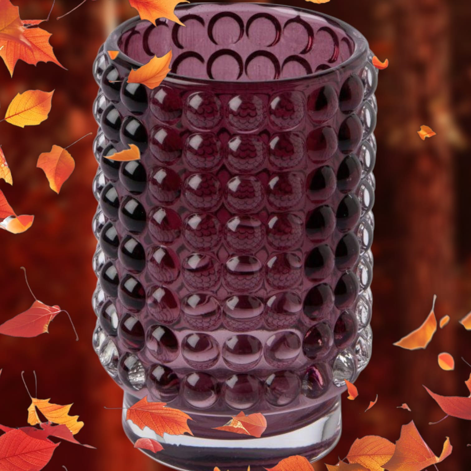 IHR skleněný svícen – fialový, výška 12,5 cm