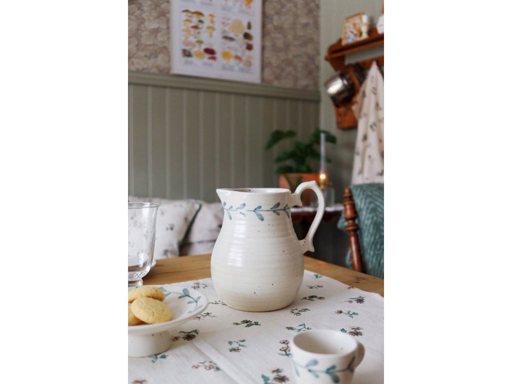 Elegantní džbánek z kolekce Viola Bow Green přináší do servírování jemnost díky svému vintage stylu a ručně malovanému dekoru. Je ozdoben puntíkovaným vzorem a jemnou lístkovou bordurou pod okrajem – každý kus je díky vypálení originální a jedinečný .