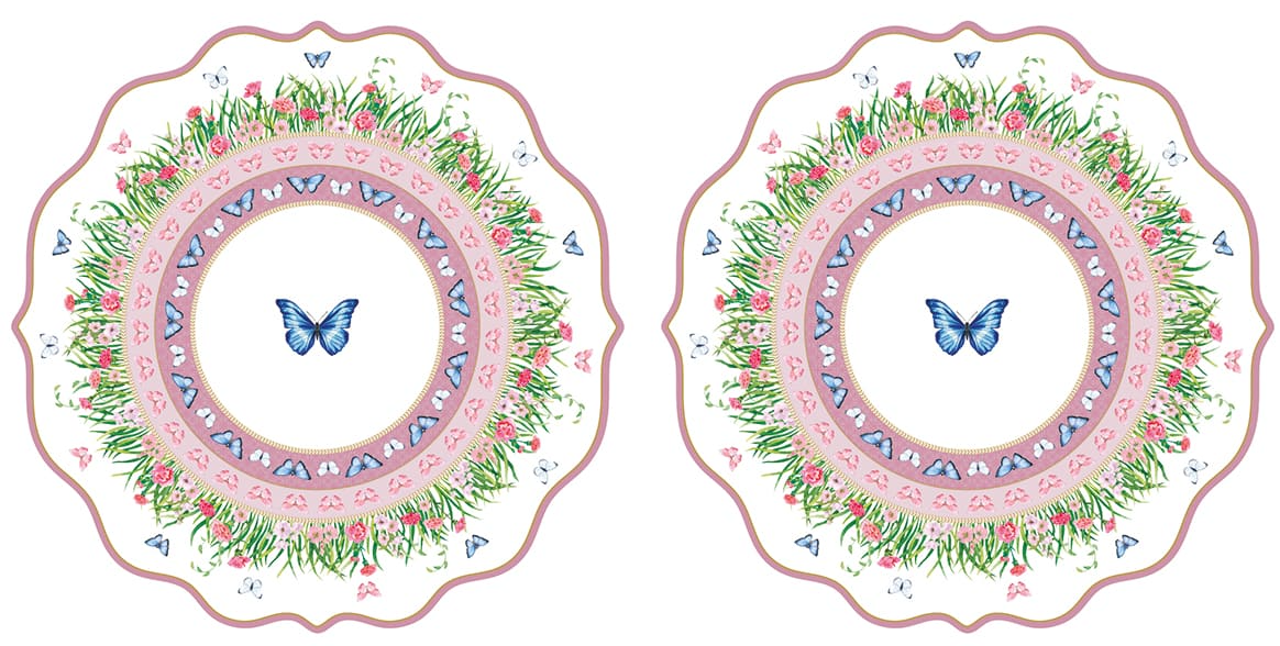 Jemné pastelové barvy, květiny a motýli vnese do vašeho stolování svěží jarní náladu a okouzlí každého hosta. -
