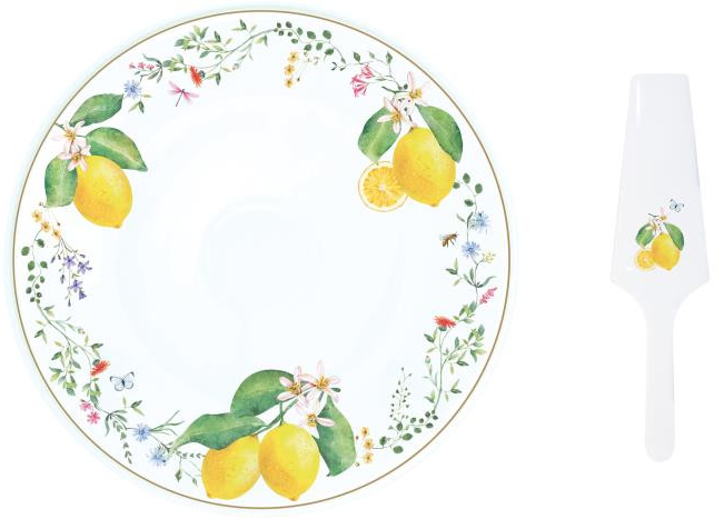 Kulatý podnos 32 cm s lopatkou na dort FLEURS ET CITRONS Easy Life