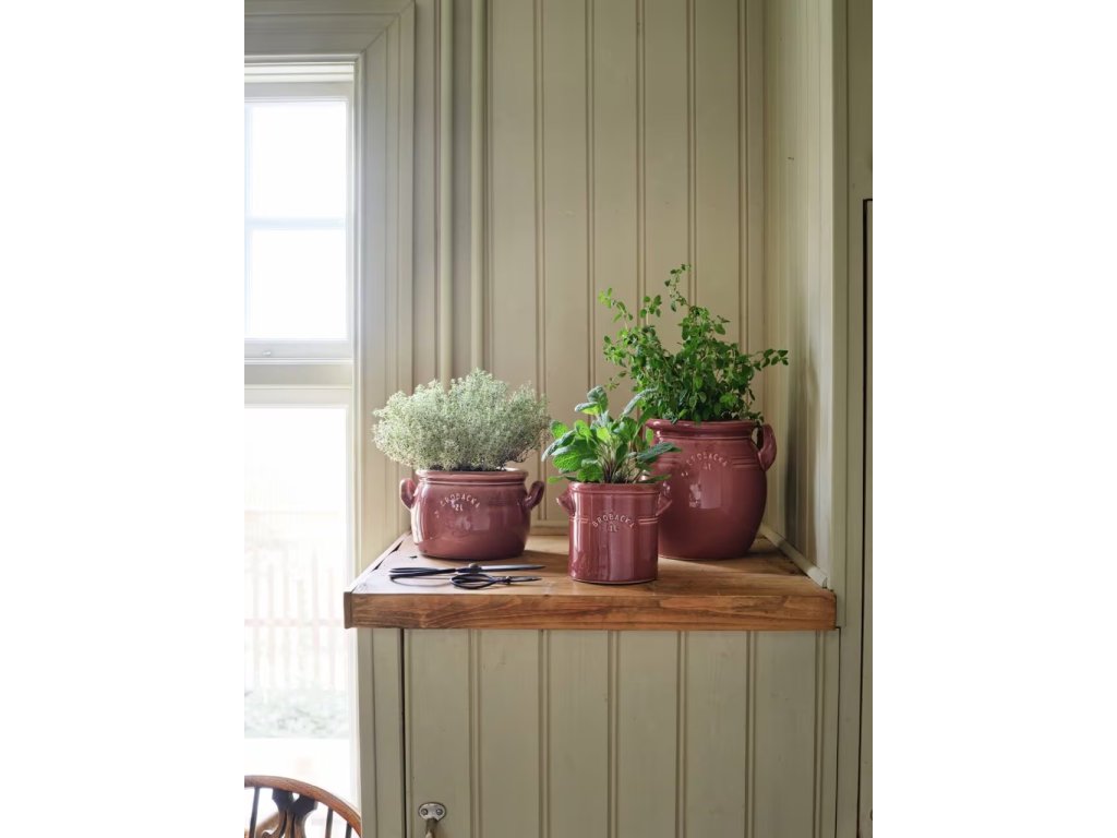 Elegantní květináč z kolekce Brobacka vyniká svou robustní keramikou s jemnou glazurou a decentní strukturou, která podtrhuje jeho autentický řemeslný charakter. Díky dvěma bocím uším je snadno přenosný a ideálně se hodí pro středně velké rostliny nebo bylinky.