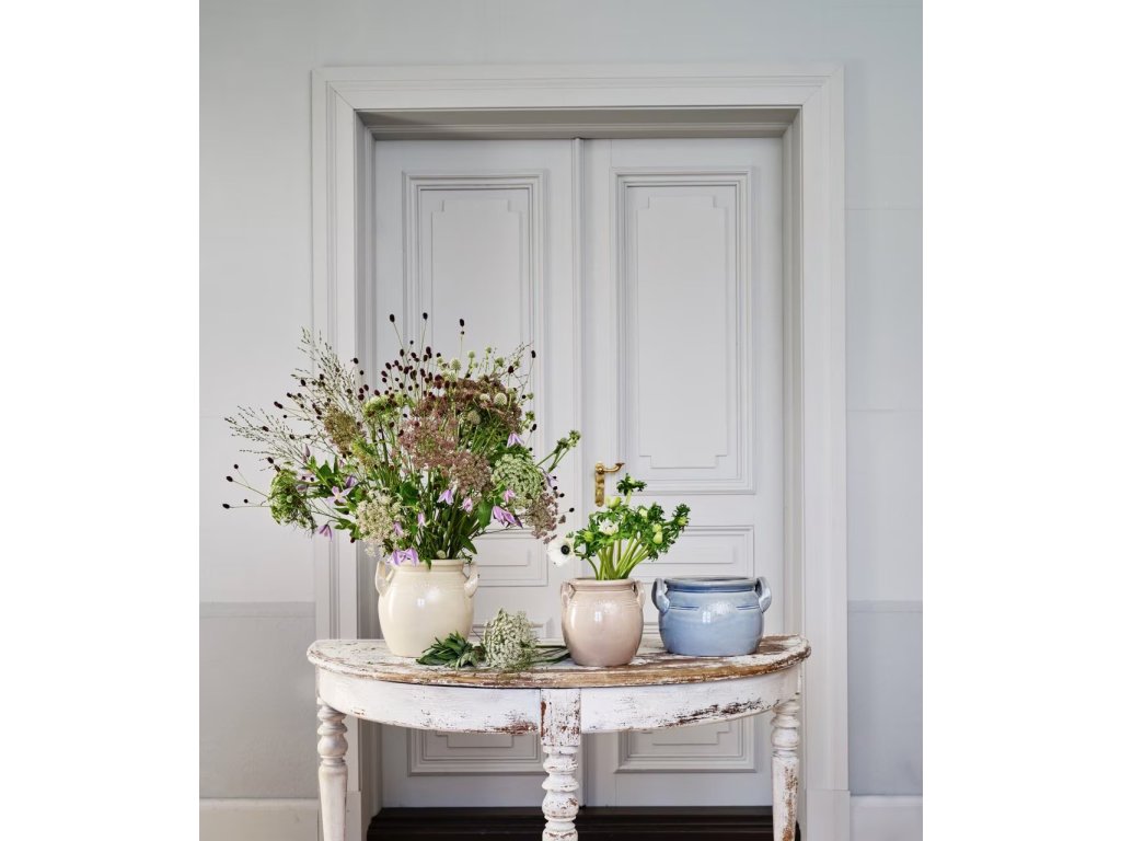 Elegantní květináč z kolekce Brobacka vyniká svou robustní keramikou s jemnou glazurou a decentní strukturou, která podtrhuje jeho autentický řemeslný charakter. Díky dvěma bocím uším je snadno přenosný a ideálně se hodí pro středně velké rostliny nebo bylinky.