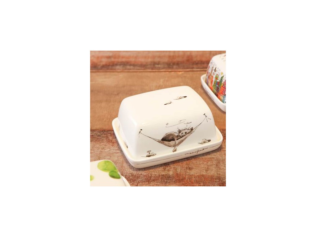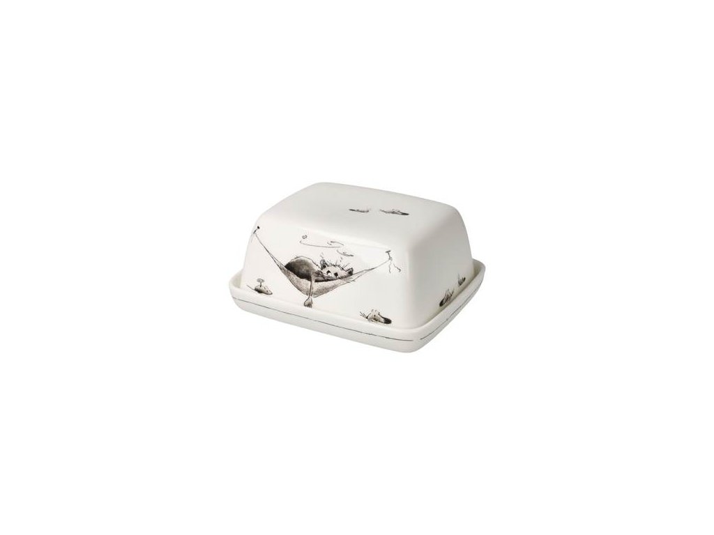 Motiv roztomilé kočky přináší pohodu a hravost na váš stůl. Dóza je ideální nejen na máslo, ale i na pomazánky, sýry nebo jiné pochoutky.