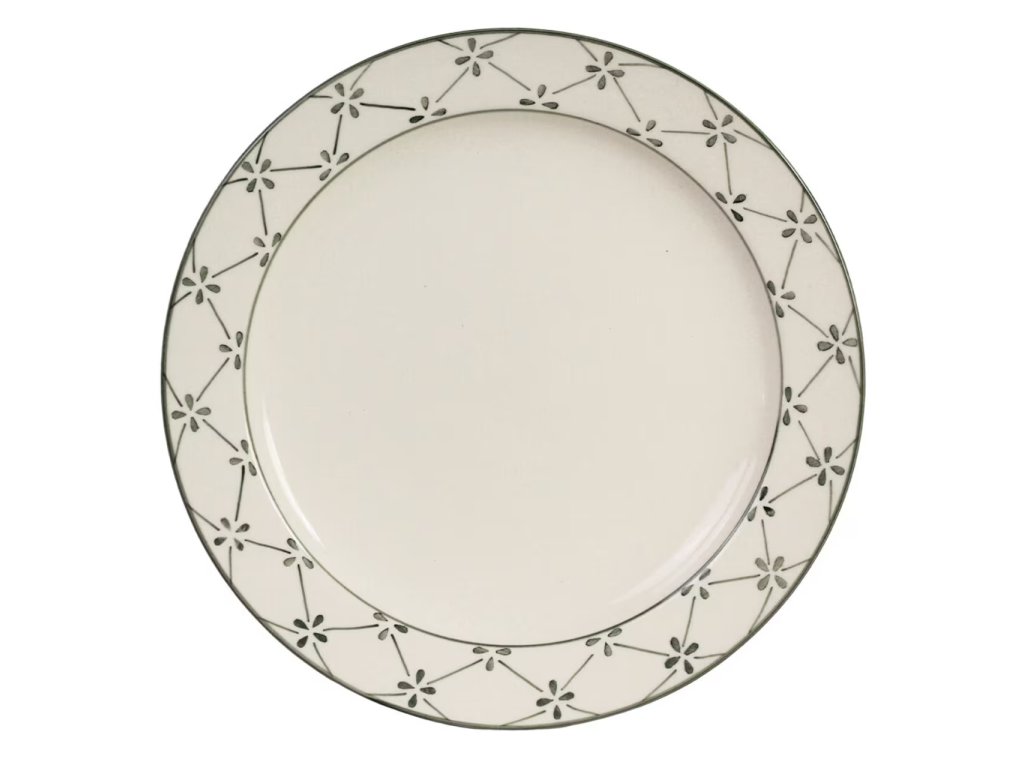 Přineste na svůj stůl svěží eleganci severského venkova s mělkým talířem Marion ve zeleném odstínu. Jemný, ručně malovaný motiv čtyřlístků na okraji dodává tomuto keramickému kousku osobitý půvab a přirozenou krásu.