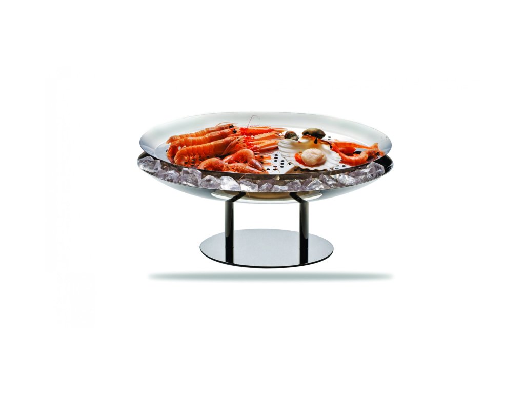Podnos na čerstvé ryby a mořské plody, na dezerty a kaviár.