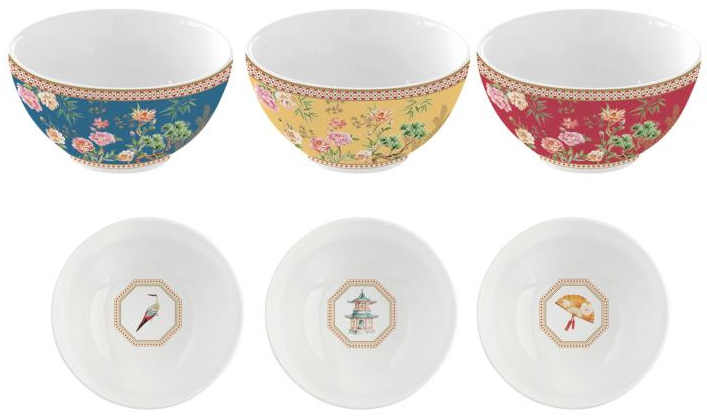 Vneste na svůj stůl šarm exotických zahrad. Sada 3 porcelánových misek Jardins d’Orient Ø 9,5 cm spojuje estetickou krásu s praktičností a je ideální pro každodenní stolování i slavnostní chvíle.