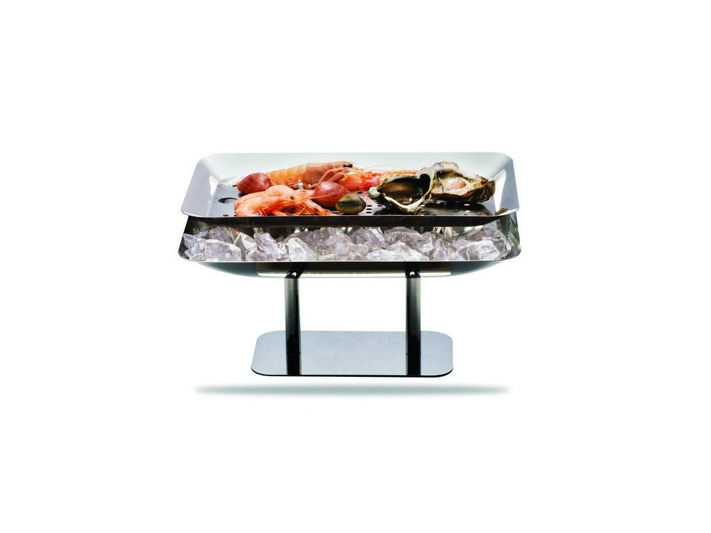 Podnos na čerstvé ryby a mořské plody, na dezerty a kaviár.