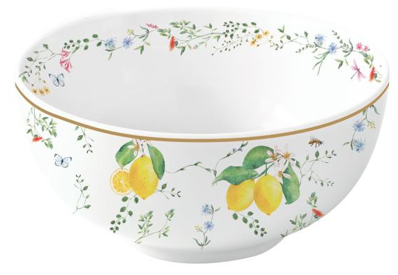 Miska je vyrobena z kvalitního porcelánu a zdobena motivy Fleurs et Citrons. Květinové a citrusové vzory dodávají stolování svěží a elegantní vzhled.