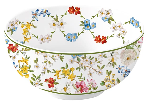 Tato miska s drobným květinovým dekorem v pastelových odstínech vyvolává pocit probuzené zahrady plné jemnosti a krásy — každý detail přináší harmonii a něhu do vašeho stolování. -
