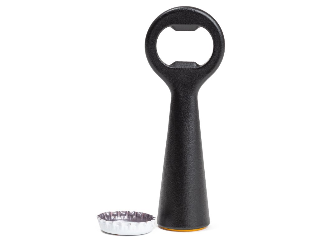 Navržen v jednom kuželovitém bloku kovu, jeho tvar připomíná šachovou figurku – elegantní a snadno padne do ruky. Díky světlým prořezům nahoře i dole lze láhve odšroubovat z obou stran, což umožňuje intuitivní a bezproblémové použití.