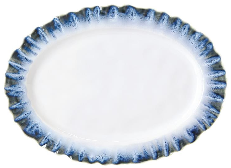 Porcelánový oválný talíř z kolekce Oceania Blue od značky Easy Life zaujme svou výraznou glazurou v odstínu oceánské modři, která připomíná barvy moře. Díky speciální povrchové úpravě má každý kus originální kresbu a stává se tak jedinečným doplňkem vašeho stolování.