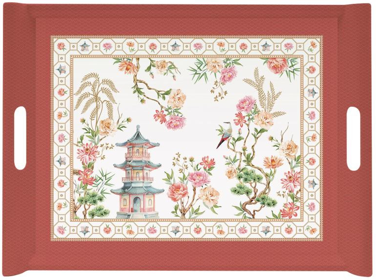 Velký podnos Zahrady Orientu s úchyty zaujme jemným orientálním motivem a harmonickými liniemi. Stylové provedení dodává každému stolování luxusní a sofistikovaný nádech.