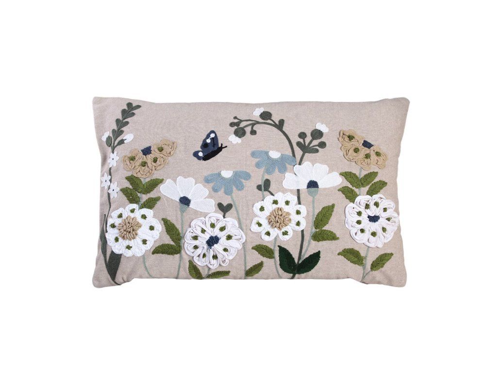 Povlak na polštář 40x60 cm FLORA EMBROIDERED BLUE, béžová Strömshaga