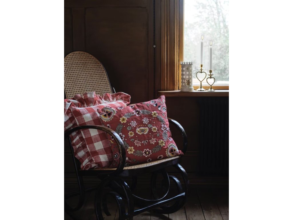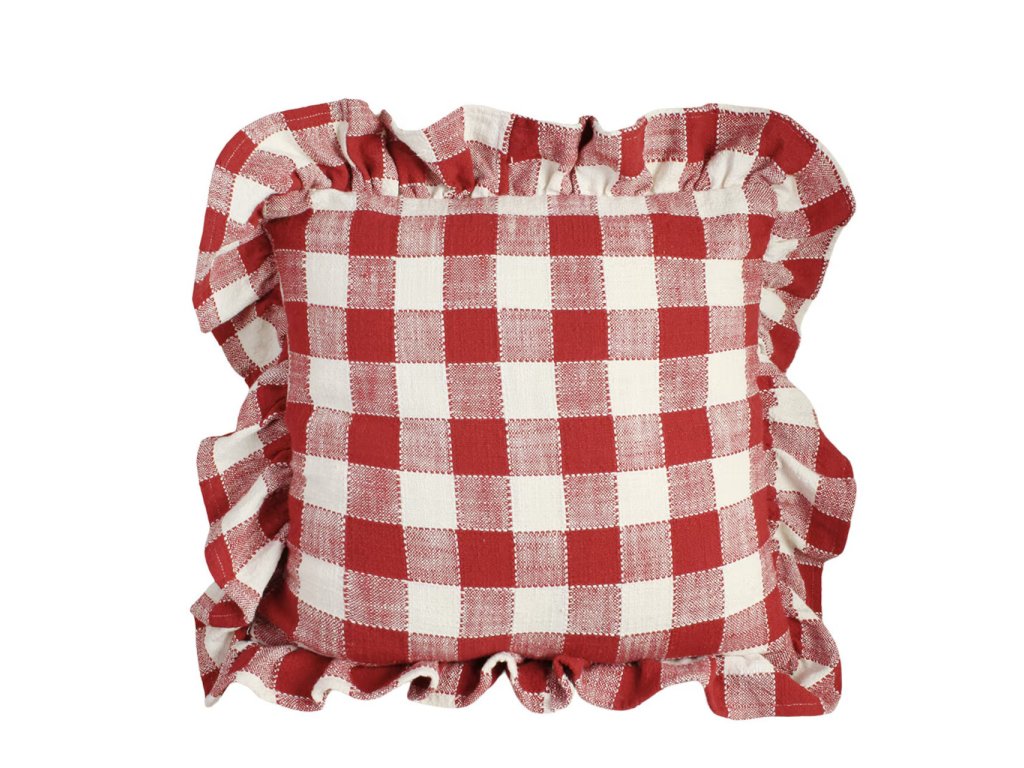 Dodejte svému interiéru hřejivý venkovský nádech s tímto půvabným povlakem na polštář Ida. Klasický červeno-bílý kostkovaný vzor a romantický volánový lem vytvářejí útulnou atmosféru, která krásně zapadne do kuchyně, ložnice nebo na chalupu.
