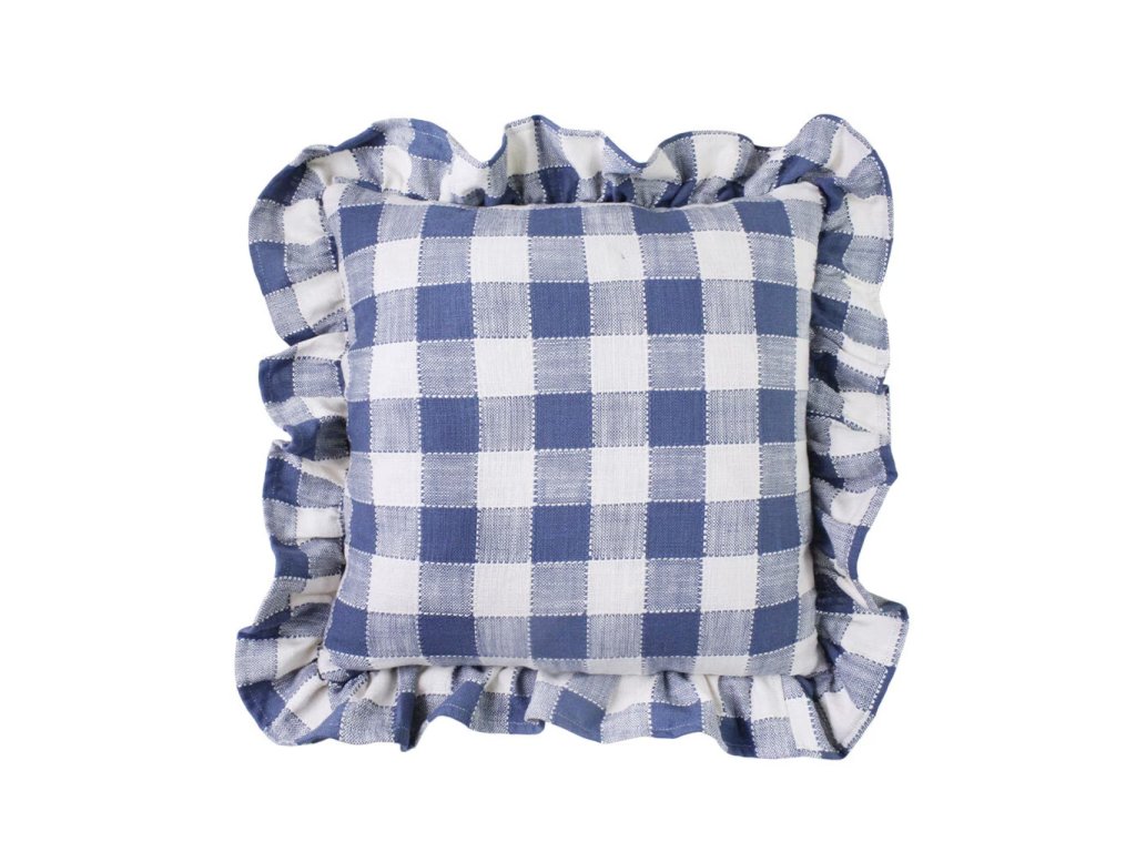 Dodejte svému interiéru hřejivý venkovský nádech s tímto půvabným povlakem na polštář Ida. Klasický modro-bílý kostkovaný vzor a romantický volánový lem vytvářejí útulnou atmosféru, která krásně zapadne do kuchyně, ložnice nebo na chalupu.