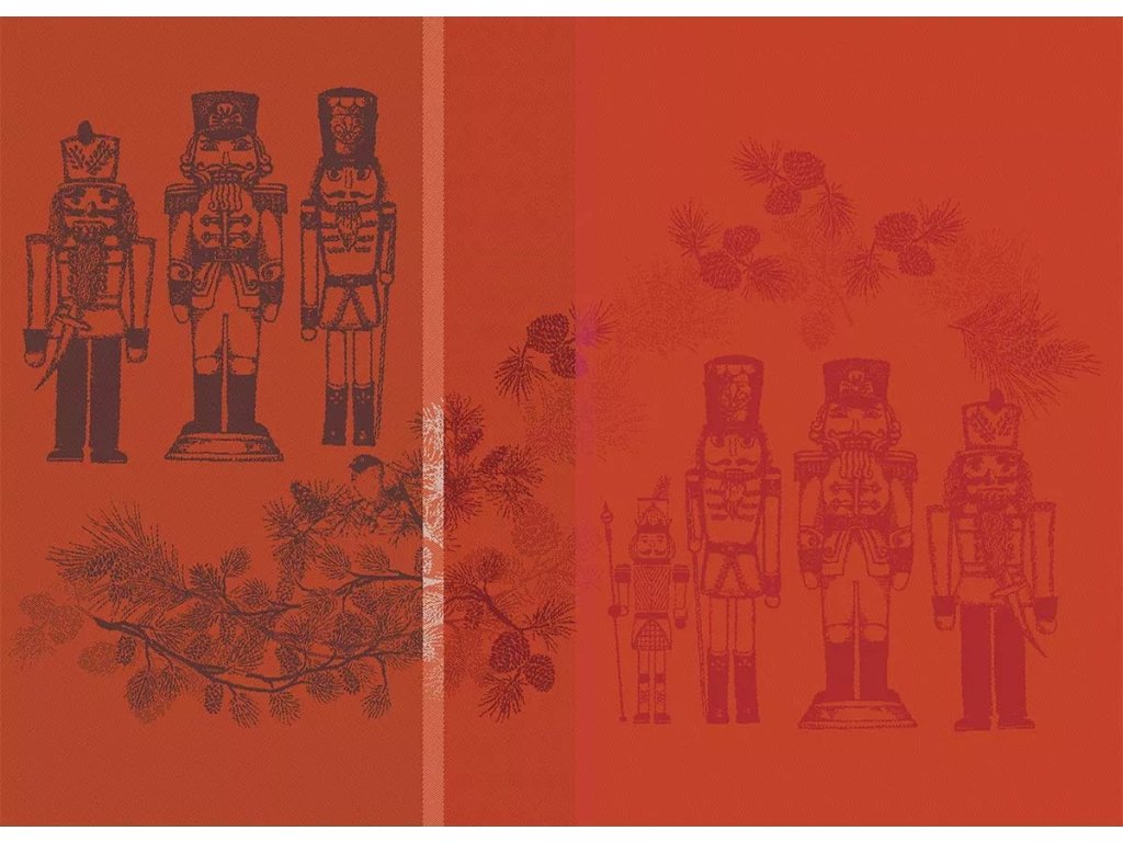 Žakárový vzor, laděný do sytě červené s motivy louskáčků a cesmíny, promění váš stůl ve scénu z pohádky – slavnostní, hřejivou a plnou detailů. Každé vlákno je zpracováno s respektem k tradici francouzského tkalcovství, zaštiťované značkou Garnier-Thiebaut – symbolem exkluzivity a designu.