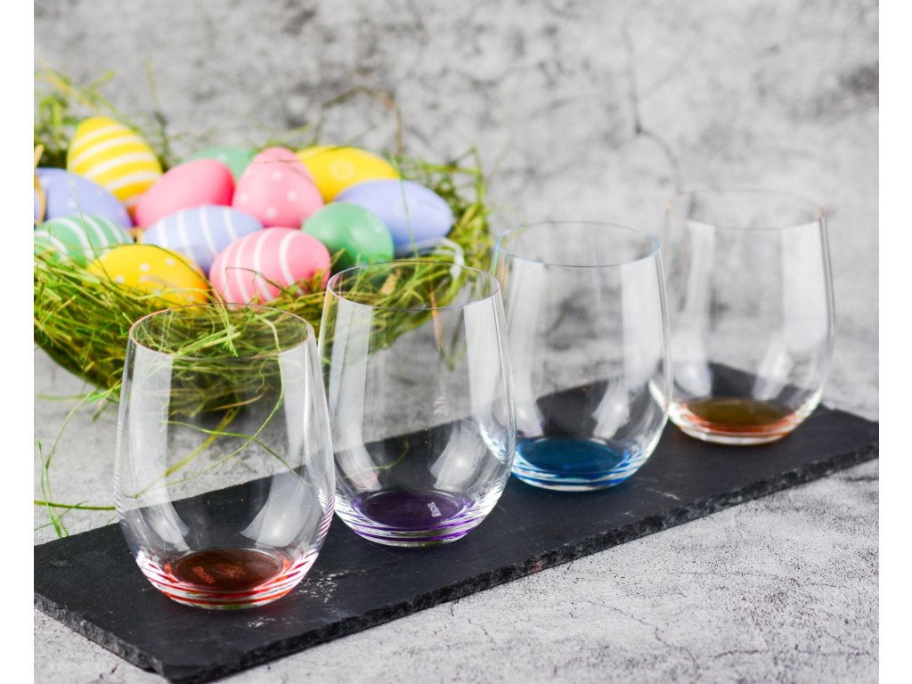 Hravá sada Happy O Set obsahuje 4 skleničky v růžové, zelené, žluté a modré barvě, které vašemu stolu dodají veselou barvu.