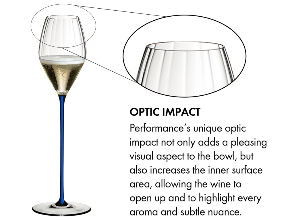 Tyto sklenice se vyznačují ikonickým optickým dopadem, který byl poprvé uveden v řadě RIEDEL Performance, který přináší lepší aromatický zážitek. Vysoce výkonné brýle RIEDEL jsou jedinečná umělecká díla, která dodají každému prostředí, ať už na párty nebo večeři, exkluzivní nádech.