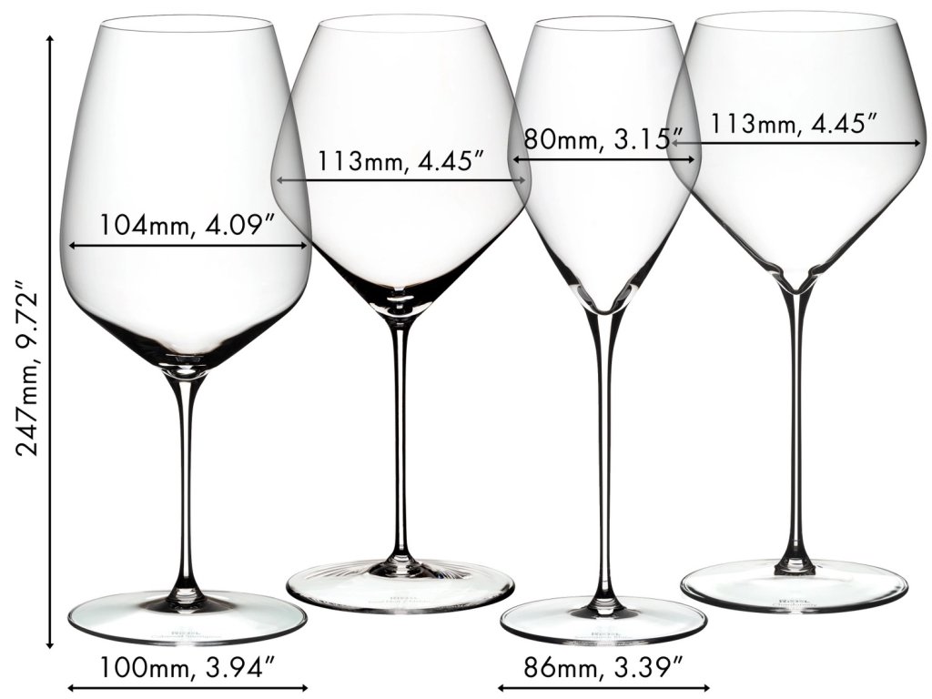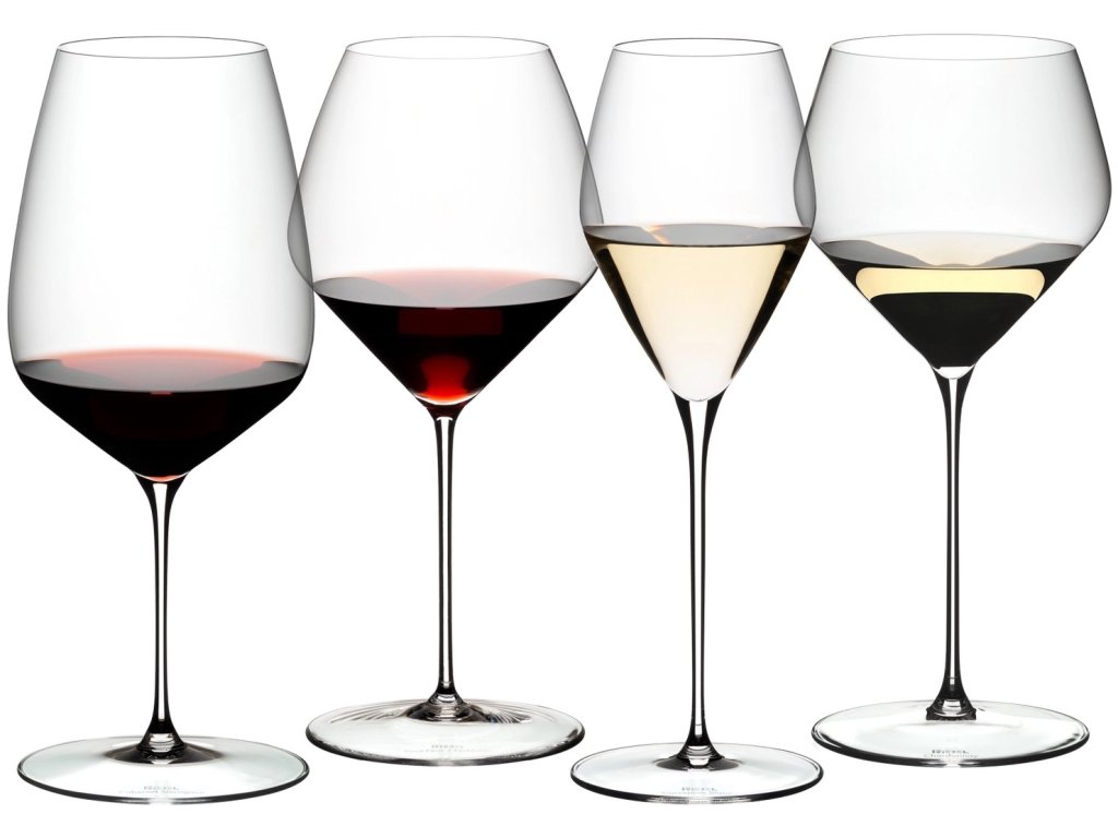 Tato degustační sada obsahuje 4 sklenice ze série RIEDEL Veloce: Cabernet, Pinot Noir, Sauvignon Blanc a Chardonnay.